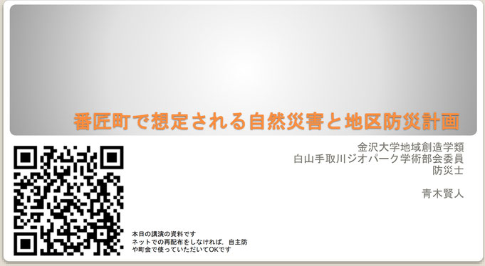 9月23日に実施予定の地区防災計画に関する講演会内でドラフト版の説明を行います。