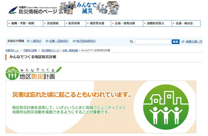 内閣府防災情報ページです。地区防災計画に関する資料です。
